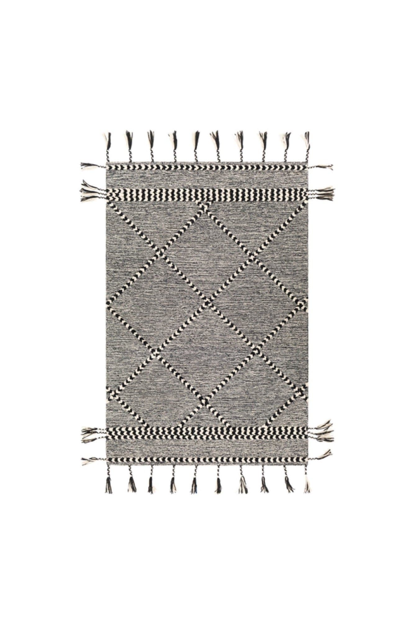 Swoon-worthy and statement-ready, the Aleah is one of our all time favorites. The eye-catching diamond pattern features a high-contrast ivory and black wool weave and is anchored at either end with parallel stripes for an effect that is utterly enchanting. The black and white coloring is both bold yet seamlessly able to complement almost any room design. Our editors especially love the hand-tied tassels that grace the edges giving The Aleah a bespoke organic look that sets the tone for both coziness and festivity.
