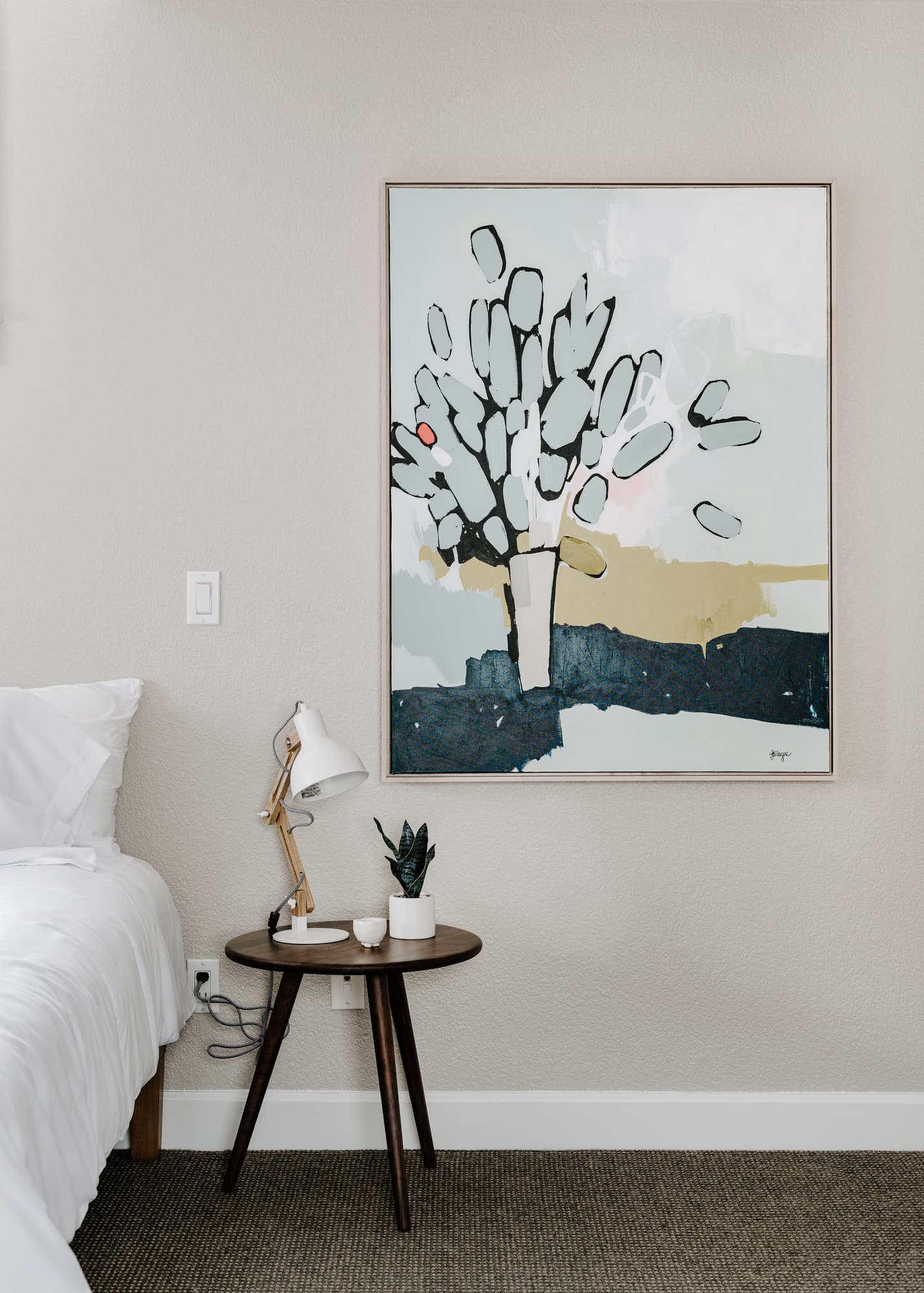 Acrylic painting on canvas. Sides of painting have been painted black. Larger paintings like this one will have to be removed from their stretcher bars and rolled up to ship. It will need to be restretched upon arrival.