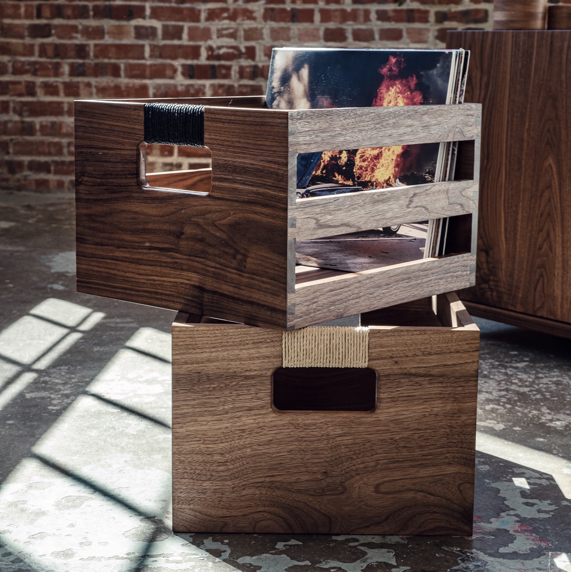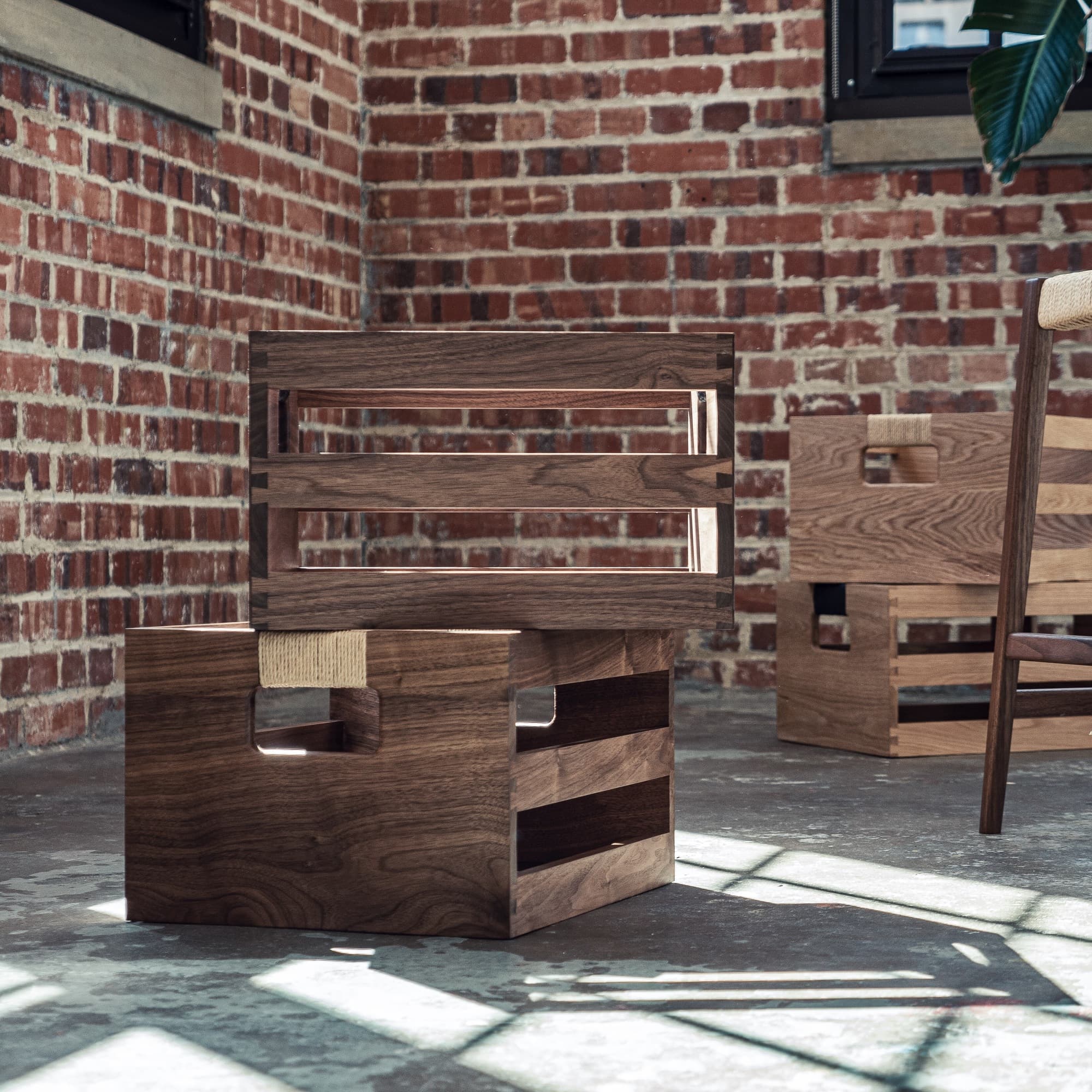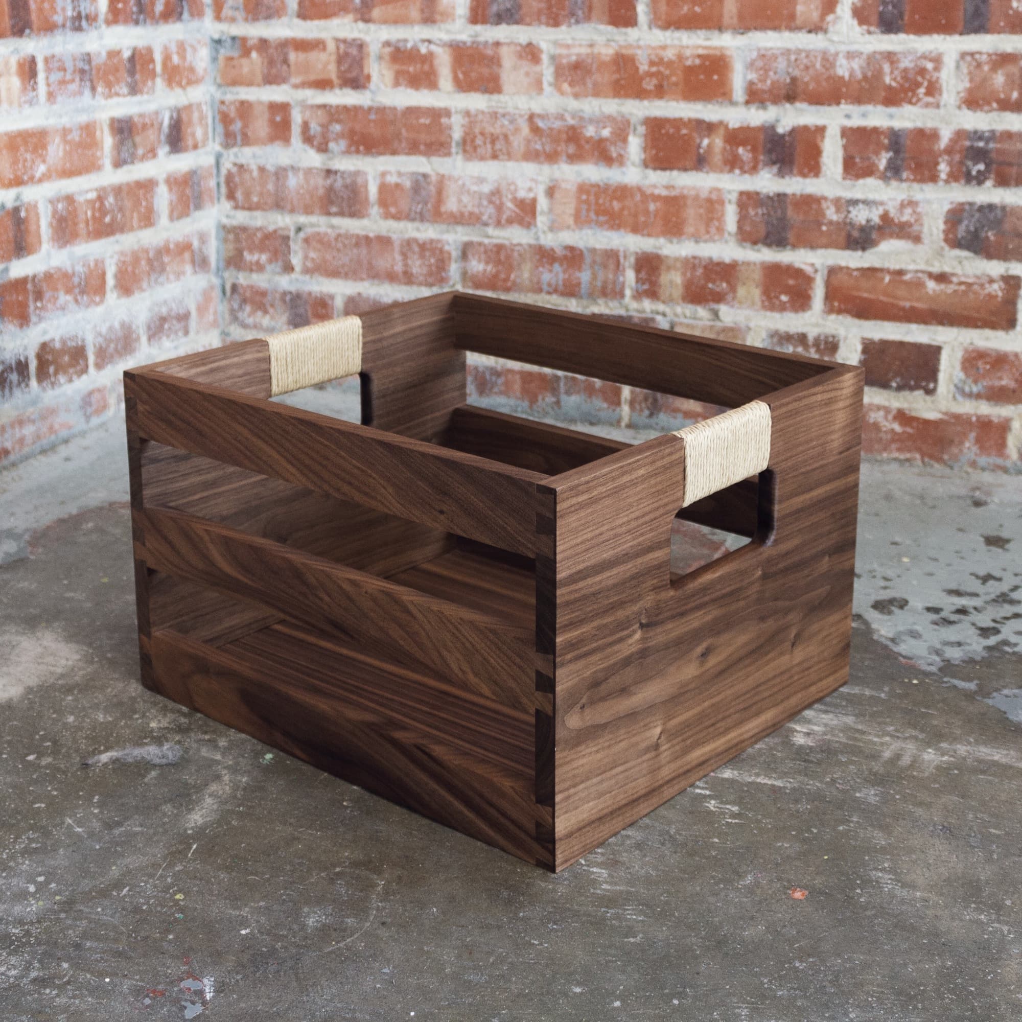 A versatile, handcrafted storage crate featuring dovetail joinery and hand-wrapped Danish Cord handles. Made from solid walnut and available with your choice of black or natural cord handles.