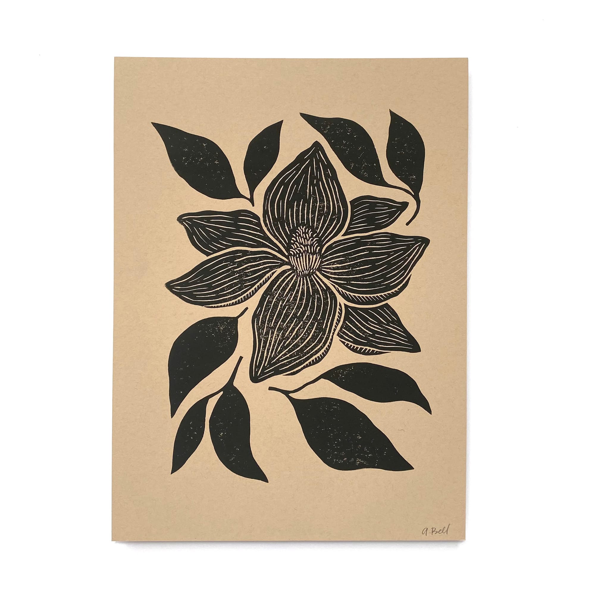 Each design starts as an illustration that is carved into a linoleum block and printed by hand in my Colorado Springs studio. Each print is individually inked and printed which creates slight variations in color and printing textures from print to print.