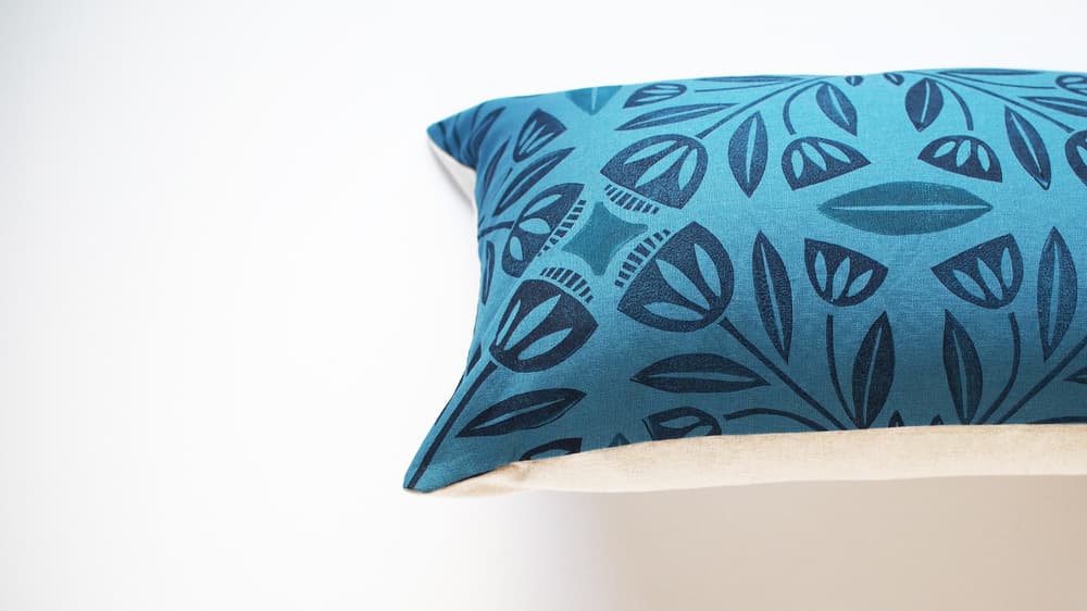 Handmade Block Printed Pillow - Branches on Natural Linen in Black