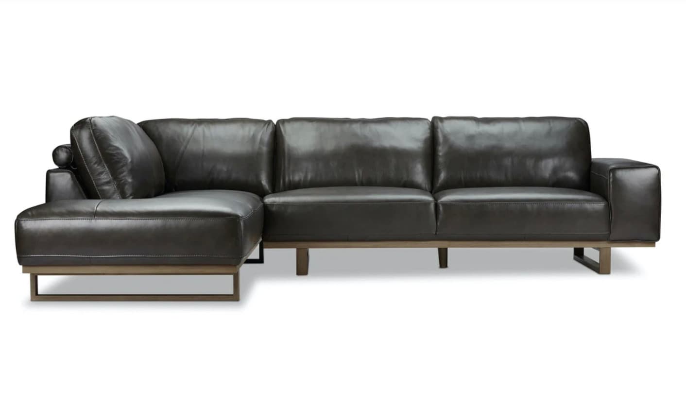 Sometimes your living room is as crowded as the streets of Hauser — but this graphite leather 2-piece sectional will make things a lot comfier. It looks like it’s straight off a Mad Man set with its full-grain leather upholstery, plush cushion padding, pine wood bar-style legs and wide-track arms. Apt2B has a 100-day guarantee on our Hauser 2-piece leather sectional sofa.