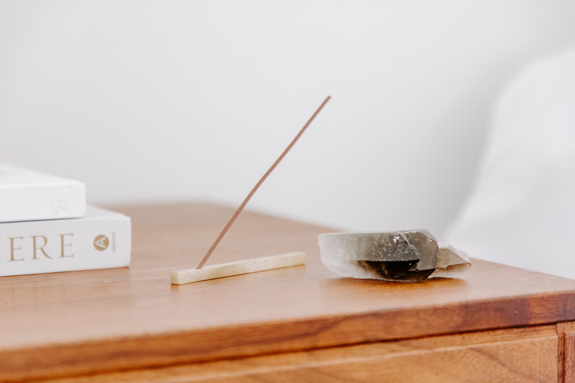 Place one end of the incense stick on the side with the dimple facing up and light the other end with a match. Let the stick burn for about 5 seconds before gently blowing out or fanning the flame. The end of the stick will glow orange and gently smoke as you begin your moment of relaxation.