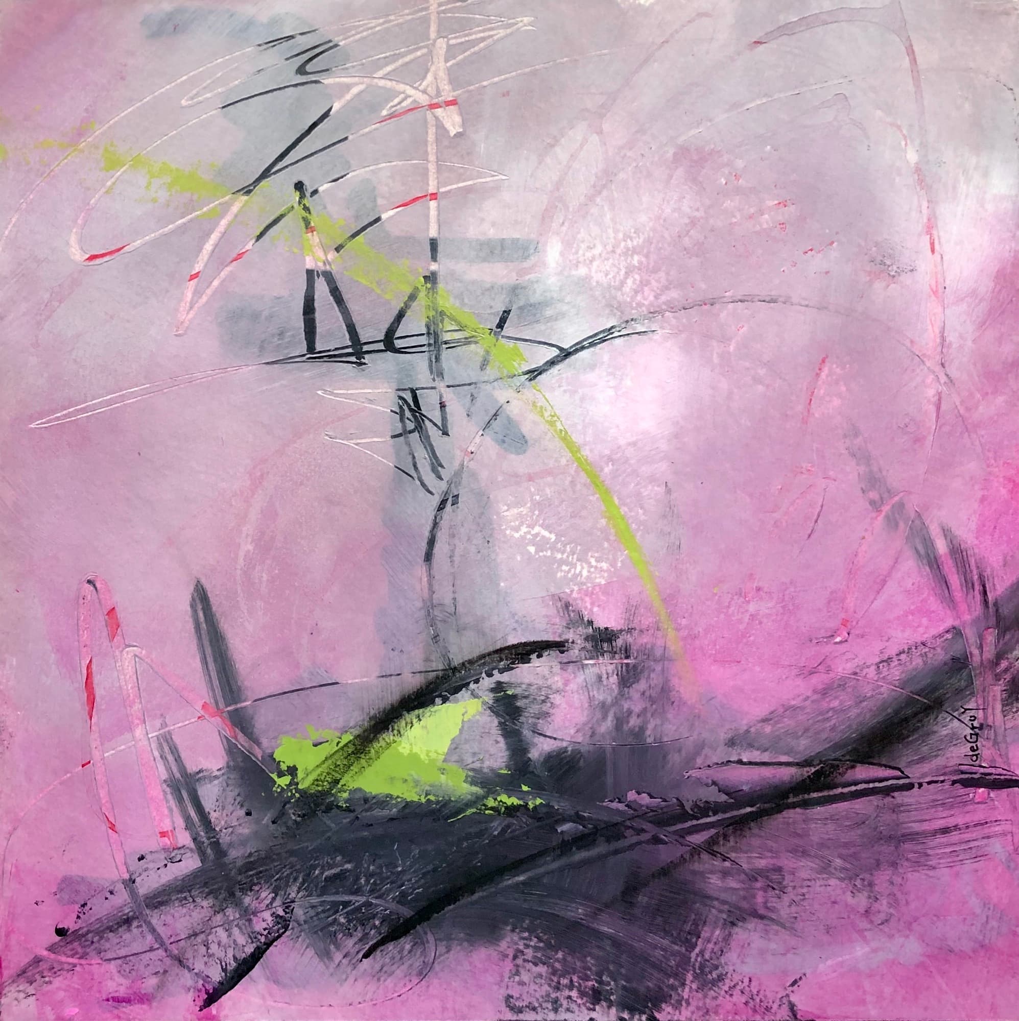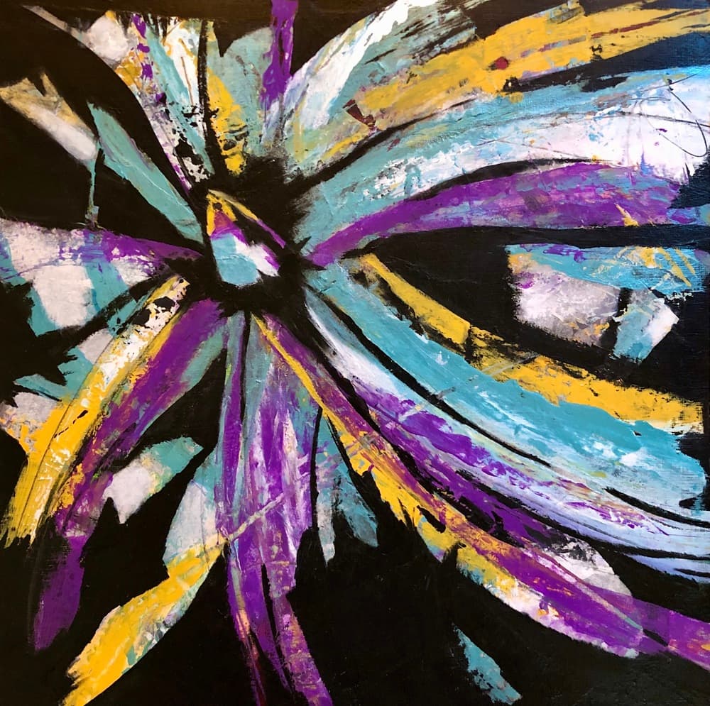 Acrylic painting mounted on art panel and set in a black floater frame, ready to hang.
