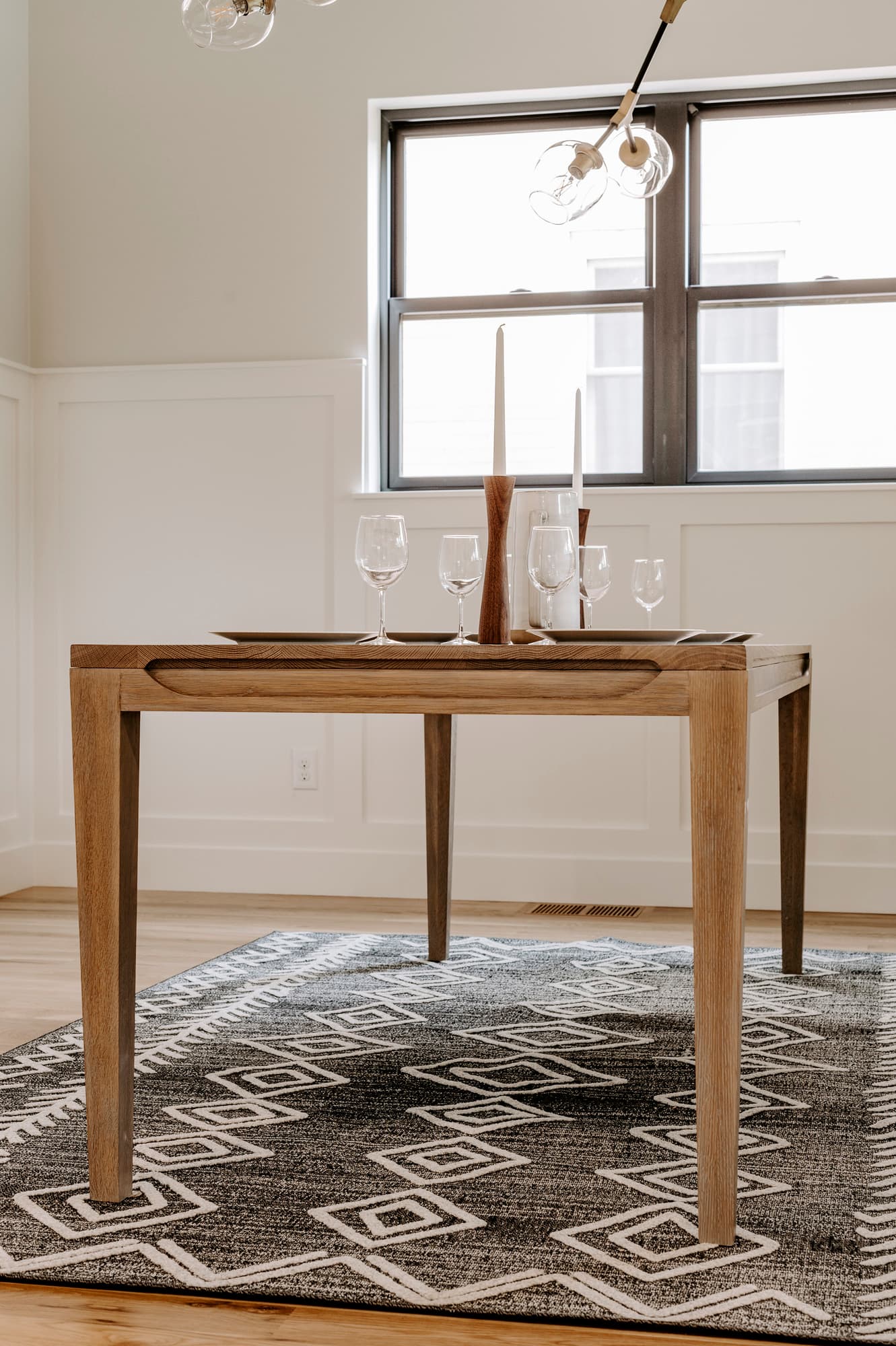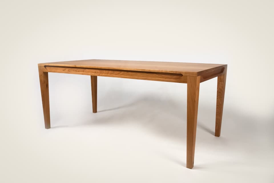 The Judy Table is a Dancing Grains classic and a sophisticated beauty. Notice the sleek curved relief along the edge of the table and the simplest tapered legs in the corners. It's a modern incarnation of the farm table design--long and inviting.