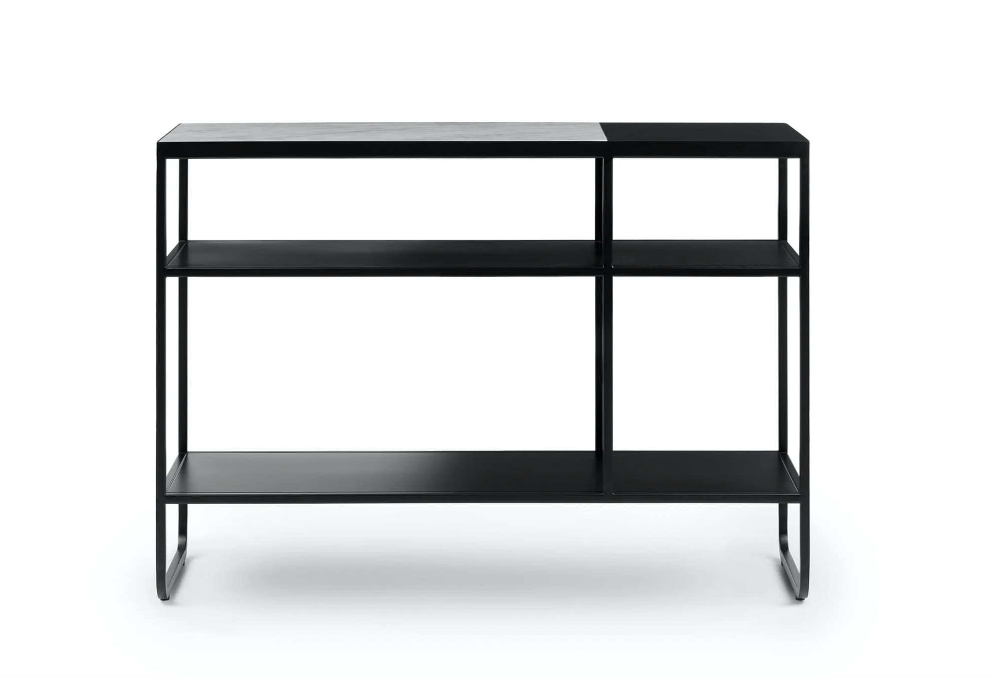 Matte powder-coated steel combines with solid Carrara marble for a sleek design that’s as beautiful as it is versatile. Separated shelf sections give you plenty of styling opportunities, while slightly curved legs add a touch of playfulness.