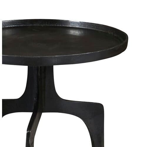 The ideal accent for minimal or modern living rooms, this stylish end table makes the perfect pick to perch next to your sofa or armchairs. It sits atop a clean-lined and architectural metal tripod base with a tray-style tabletop perfect for hosting an accent lamp or a few plants. It is crafted from aluminum, making it lightweight and easy to move around. And the best part is no assembly is required – gotta love that.