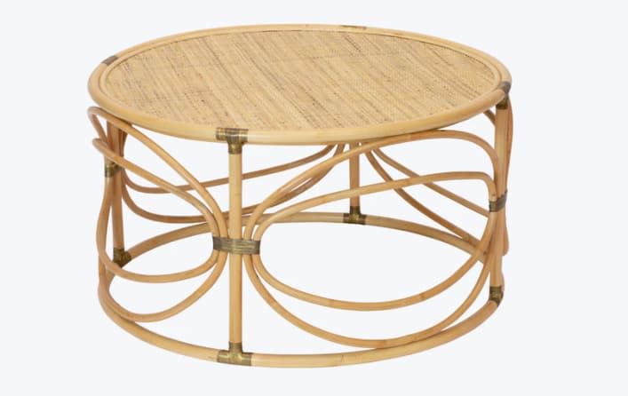 Talk about the life of the party! This bar cabinet features natural woven cane, functional built in shelves & storage, and modern circular handle pulls.
