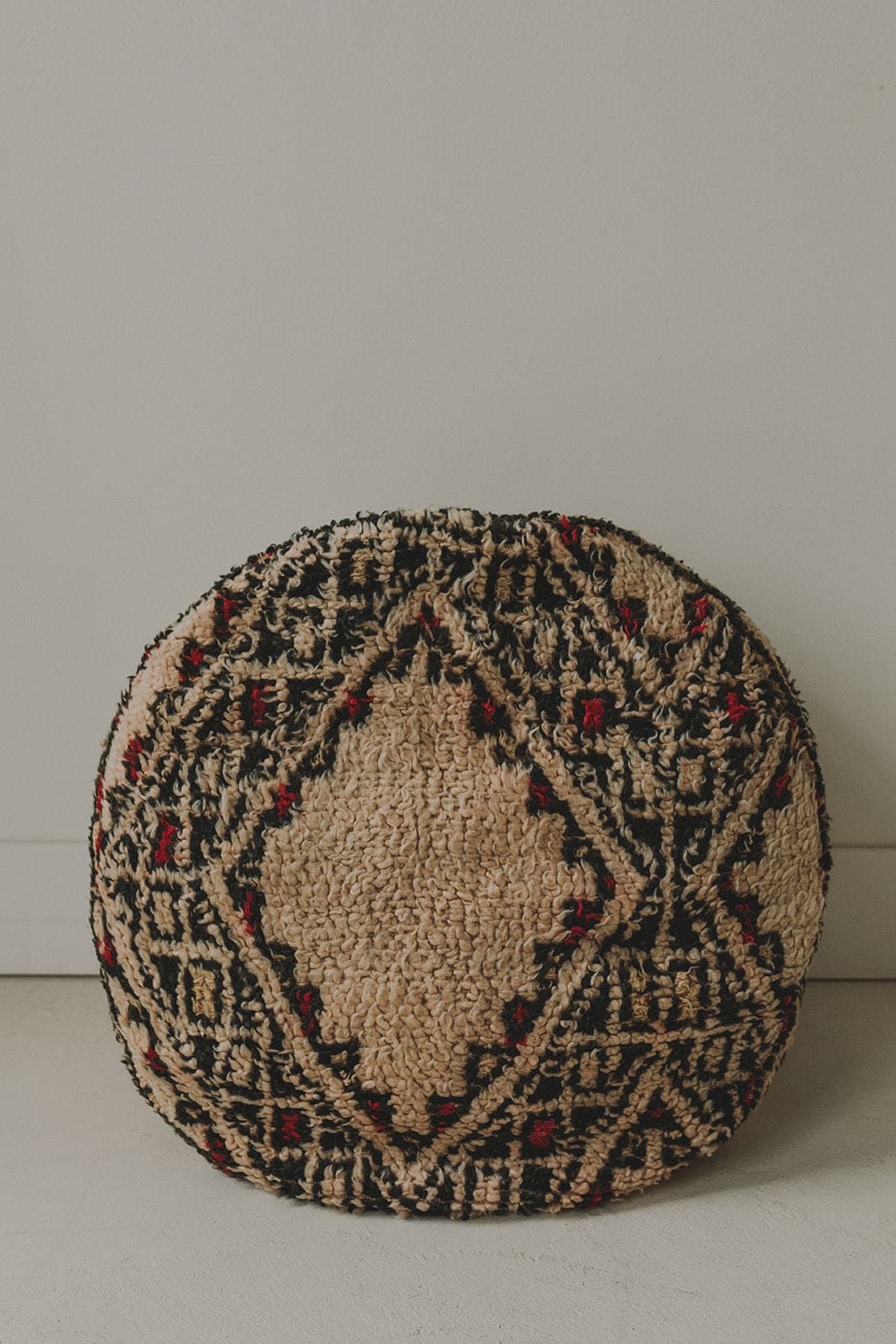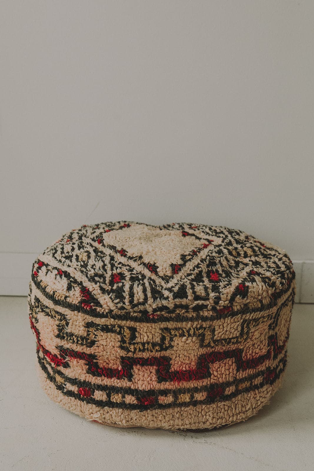 This stylish rug pouf is handcrafted in Marrakesh from vintage moroccan rugs with a zipper closure.