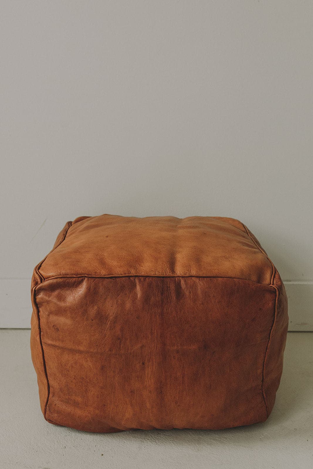 This stylish leather pouf is handcrafted in Marrakesh from genuine leather with a zipper closure. The leather is hand dyed so color will vary slightly.