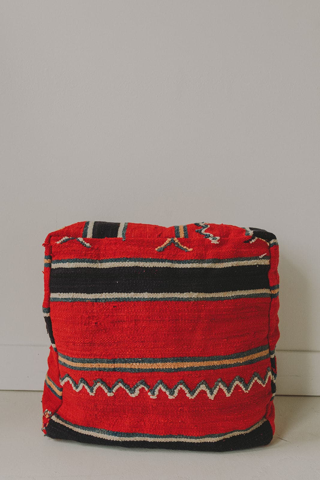 This stylish rug pouf is handcrafted in Marrakesh from vintage moroccan rugs with a zipper closure.
