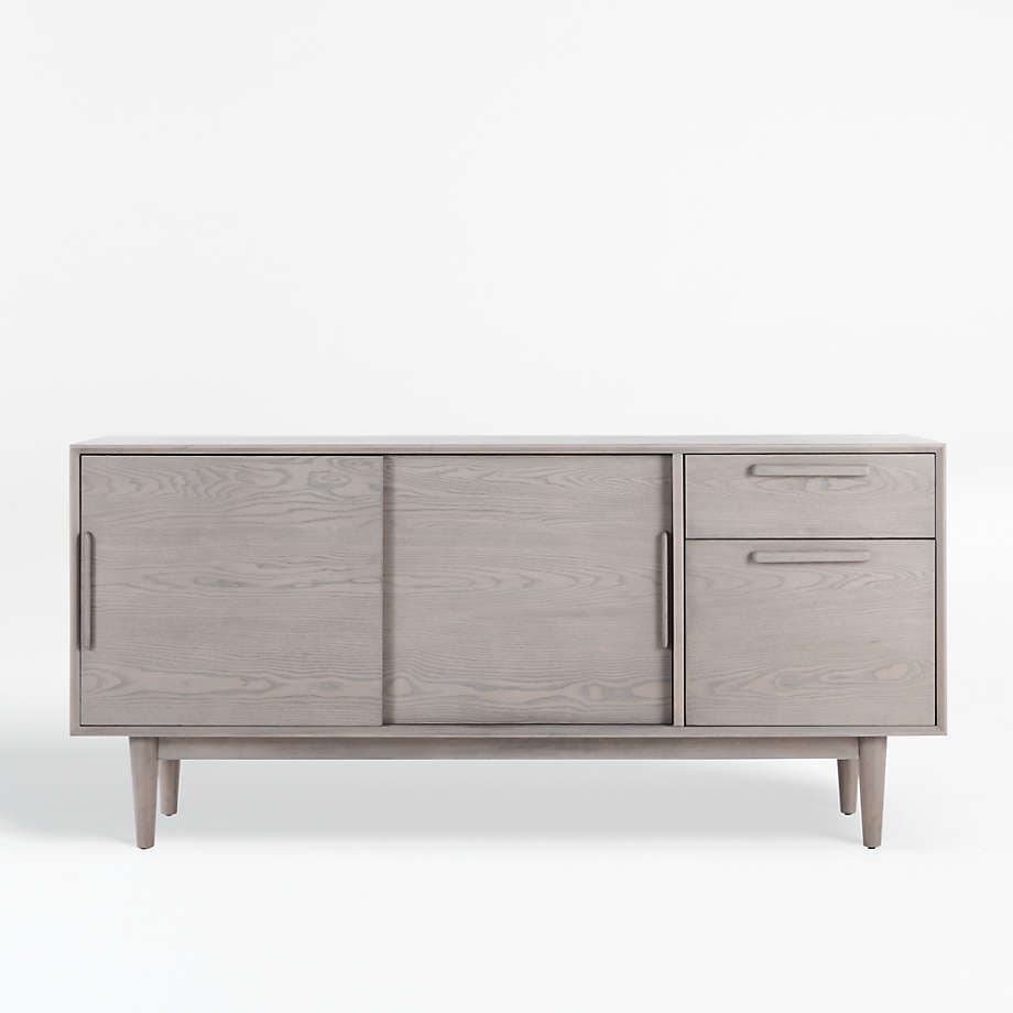 Our 1960s-inspired Tate media console recalls the timelessness of mid-century design with a tailored profile and streamlined shape that works well in any room. Doubling as a credenza, the console offers plenty of storage space behind smoothly sliding doors. Drawers accommodate everything from remotes to files to table linens.